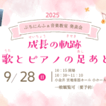 - 【ご来場ありがとうございました】2025年発表会 成長の軌跡 歌とピアノの足あと 終演のご報告【発表会ご来場ありがとうございました】 音楽の喜びにあふれたひととき──子どもたちの成長が光ったステージ 20… 続きを読む: 【ご来場ありがとうございました】2025年発表会 成長の軌跡 歌とピアノの足あと 終演のご報告